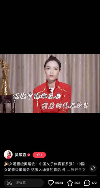 在中国女足集体入驻小红书时,队长吴海燕说她跟队友在训练之余用小红书记录自己的生活,也喜欢日常生活中刷一刷小红书上的内容。如果刷到关于她们的内容,也会偶尔跟队员们分享。