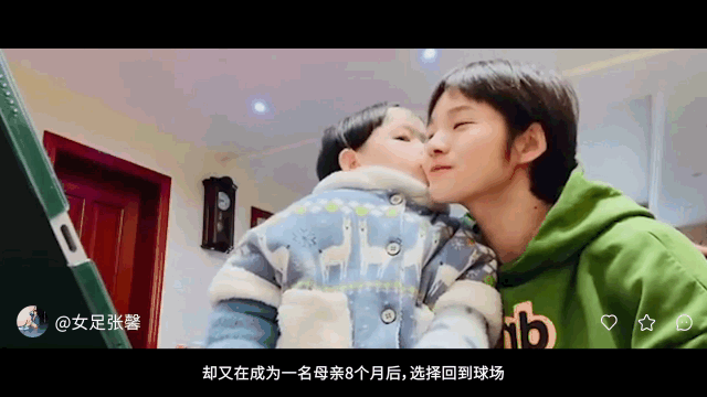 张馨是队内唯一的妈妈球员,当了母亲后选择归来,只因“不想让孩子觉得那个会踢球的妈妈是假的,能让儿子看到妈妈在奥运会踢球”。