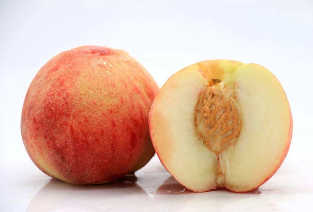 我们把视线向东,就是蜜桃的另一个优质产区山东,山东产桃最有名的是肥城。这座鲁中小城,坐落在泰山西麓,境内水系分属黄河流域与大汶河流域,地貌类型复杂多样,温带大陆季风气候,四季分明,光照充足,气候温暖。年日照时数为2607小时,年平均气温12.9℃,无霜期200天左右。平均降雨量659毫米,拥有得天独厚的桃子种植条件,更有着千年的种桃历史。肥城桃简称“肥桃”,肥城桃果形端正、美观,呈圆球型,果尖稍凸,缝合线深而明显,梗洼深广,两半对称。成熟后果面底色米黄色,部分阳面有红晕。山东出品,什么都大,肥桃果实肥大,可达一斤半一个,绝对把你吃撑 。不同于水蜜桃的绵软,肥城桃即便是蜜桃,软中也带有些许生脆,保留着桃子的质感,甜又甜得恰到好处,香也香得纯粹自然。