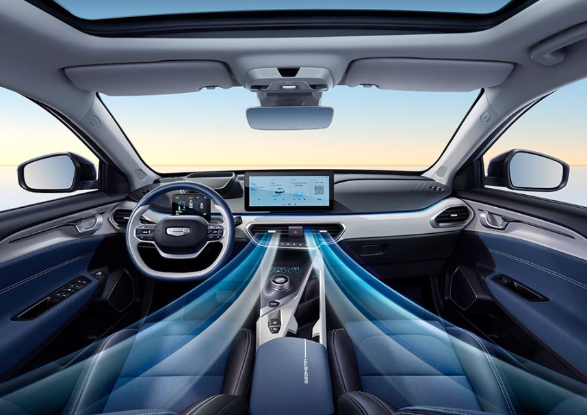 几何APro的中控屏采用了12.3英寸液晶显示屏,内部集成G-Netlink智能车联网系统,具有智能语音交互与控制、预约充电、OTA在线升级等功能,为用户行车提供便利。此外,在电子换挡杆前方,几何APro设置有E-Touch中央超感触控区,可通过虚拟光影投射的超感功能区进行制动能量回收选择、自动启停开闭等功能操作,在使用体验上类似于电影中出现的黑客使用的虚拟光影键盘,科技效果出众。