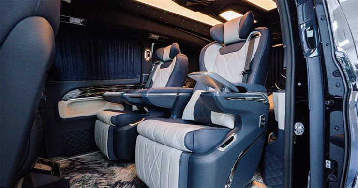奔驰V260多瑙河,车身中舱也就是乘客舱,主打的高级定制航空座椅,展现眼前。二排座椅,各自独立,可以实现180度旋转,满足不同人群需求。后舱座椅,也即是三排座椅,可放平,可躺着休息,可坐着娱乐,两者皆可,看您选择。这里的中后舱还设置有进口车载冰箱、可拆卸的座椅后背办公桌板、进口柏林之声音响等娱乐休闲设备,供您选择,只为您的享受和休闲。如您对奔驰V260多瑙河感兴趣,可私信我获取更多图片及车型参数。
