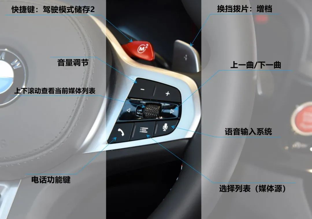 其他最新M车型的按键基本一致,解析如下: