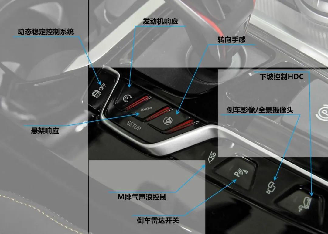 本篇M按键文章主要整理为三个部分,分别是方向盘区域、中控区域和排挡杆区域。