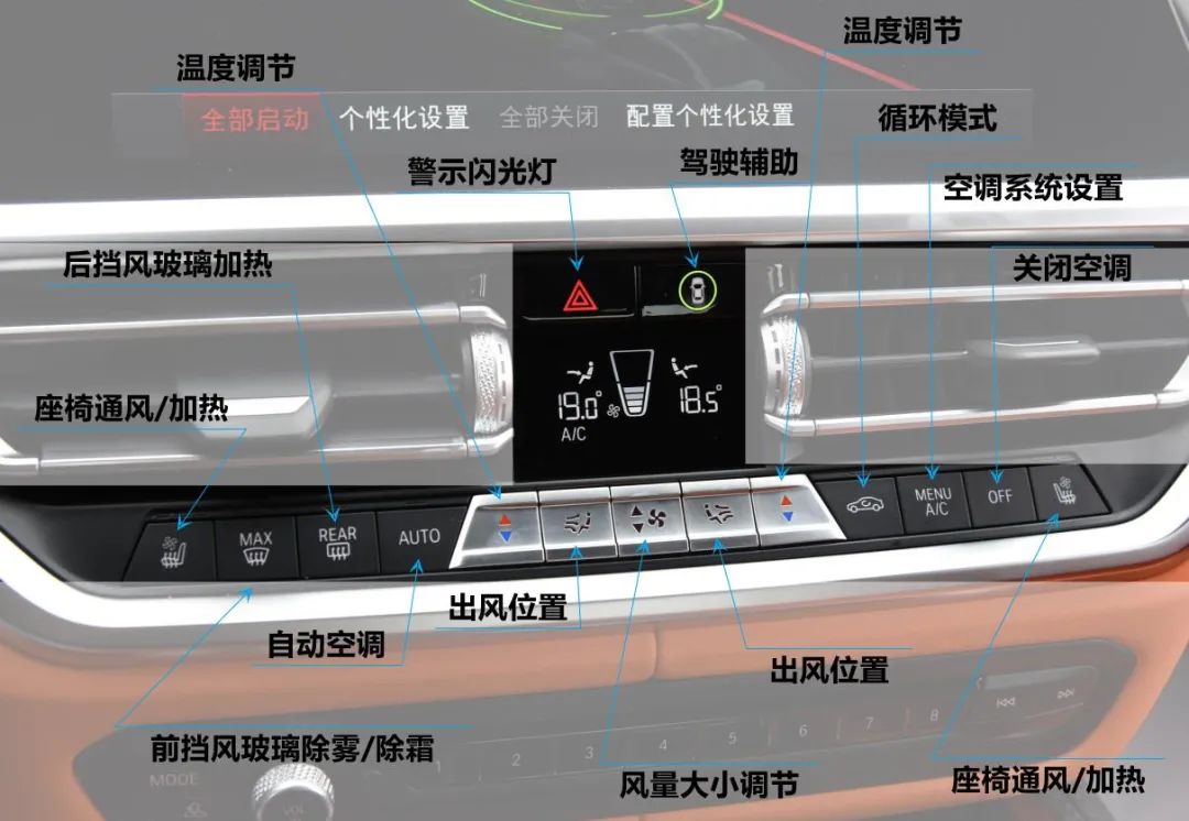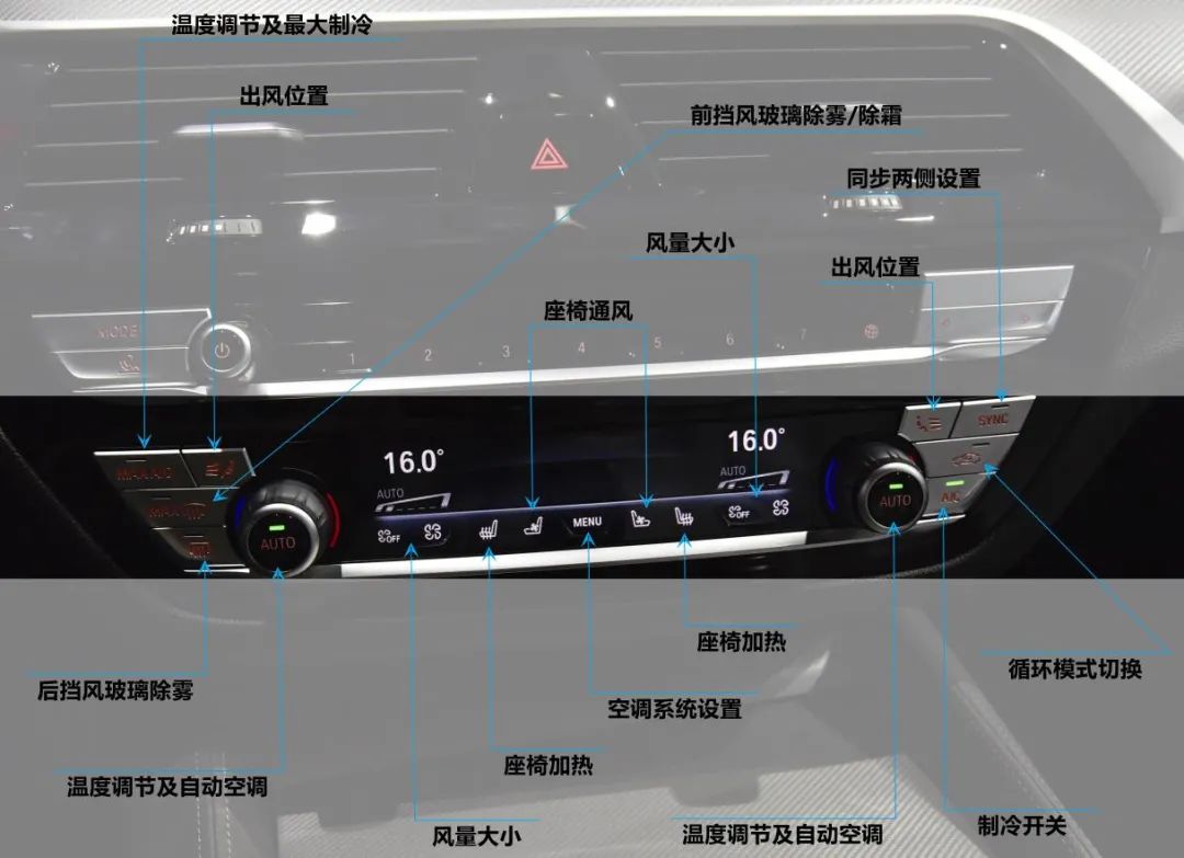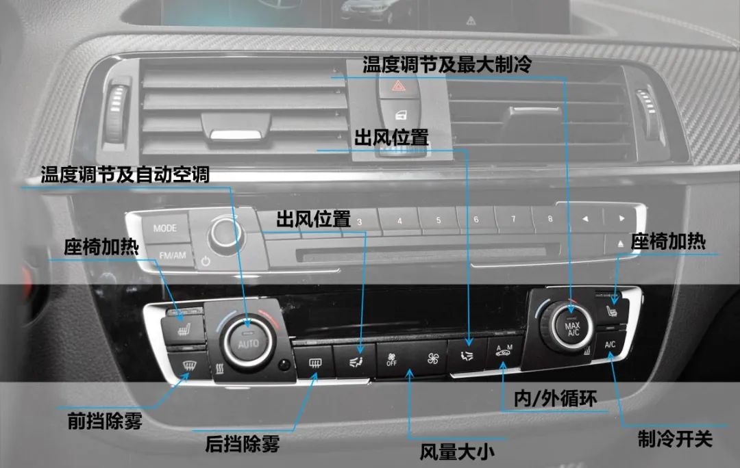 是否留意到有部分车型的出风位置图案上对头部调节的图变成了挡风玻璃的图案?没错,就是可以选择给玻璃吹吹风