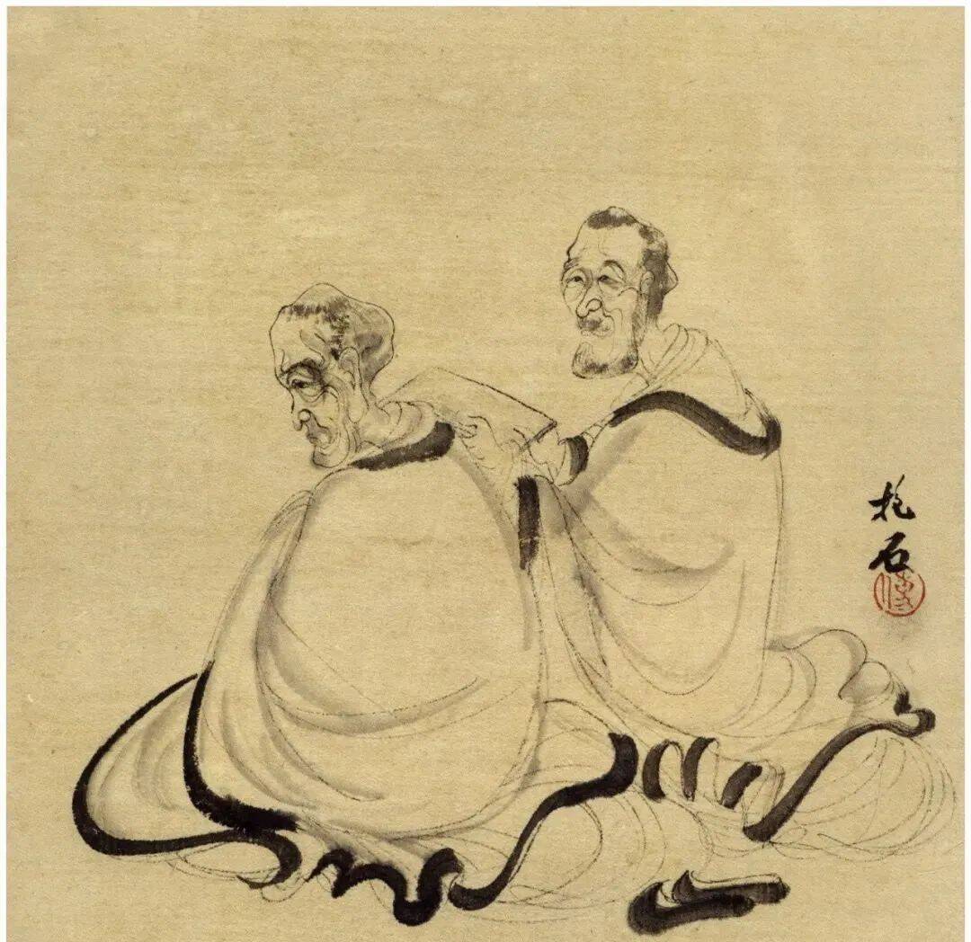 傅抱石《历史人物册》双罗汉图