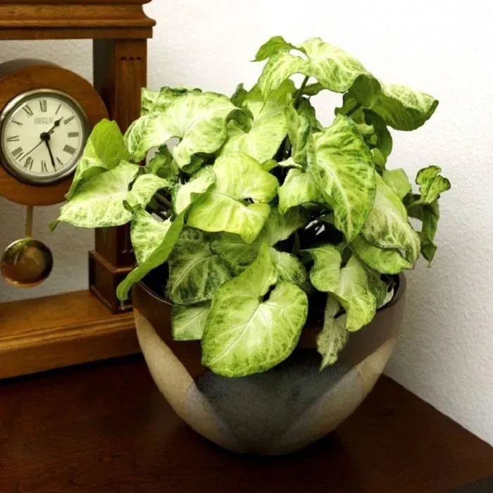 合果芋的植株小巧,养在小花盆里,就可以满足它的生长需求,养护期间一定要避免温度过低(最低温度维持在4度以上),保证一定的空气湿度,就可以让它维持良好的状态。