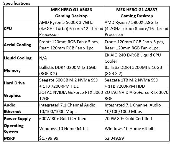 A5837 型号配备 AMD R7- 5800X 8 核处理器、RTX 3070 显卡,内置 1TB NVMe 固态硬盘、1TB 机械硬盘。主机电源功率 700W,售价 2349.99 美元(约 15227.94 元人民币)。