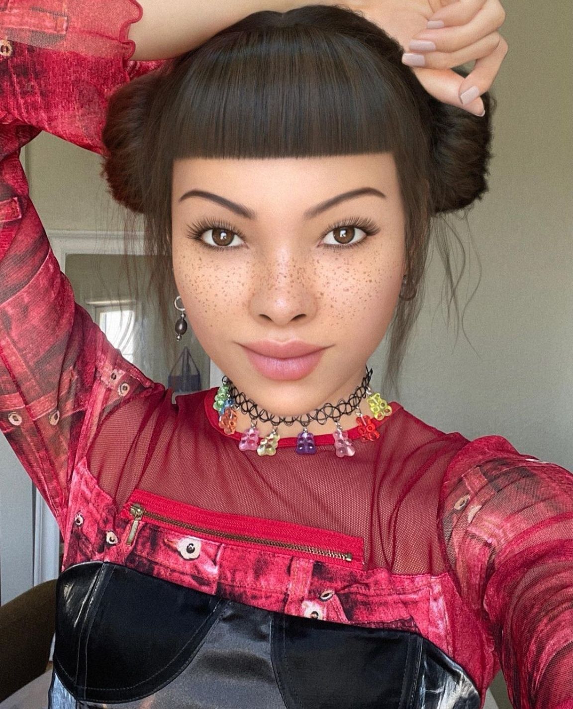 从2016年到2021年,数字技术的进步,在Lil Miquela的脸上有着最鲜明的进化过程——毛发渲染更加真实、脸颊线条更为柔和、皮肤肌理质感更为细腻、脸部与身体的光线反射及阴影处理更加写实……技术的进步,让超写实虚拟偶像,正在无限度地接近现实。