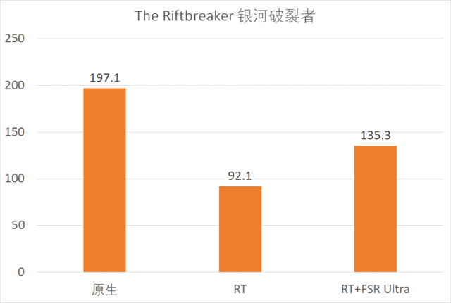 我们使用AMD Radeon RX 6800XT显卡,在4K分辨率下进行测试,原生设置下帧数大约是197.1帧,而开启RT光追之后帧数迅速降低到了92.1帧左右,流畅度大受影响,但再开启AMD FSR技术之后,帧数提升了40多帧,达到了135.3帧,流畅度提升。开启对分辨率影响肉眼几乎不可见的FSR Ultra后,光追+FSR的帧数虽然落后原生帧数约30%,但是达到了只开光追的1.47倍,效果还是非常显著的。
