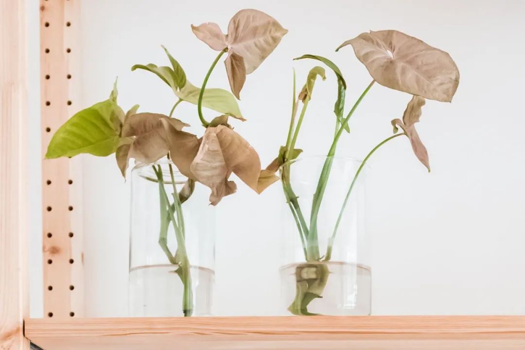 合果芋的枝条长长了,也可以剪一截下来用于水培扦插,只要有一个生长几点就行了,枝条底部有一点点浸泡在水里,甚至都不用换水,温度在18度以上,几天就可以生根,后期可以继续水培养护。