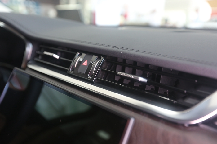 下方的空调操作区被改为触控式设计,两侧带有六边形滚边的旋钮通过上拉/下按的形式可以调节风量、温度和座椅加热/通风等功能。