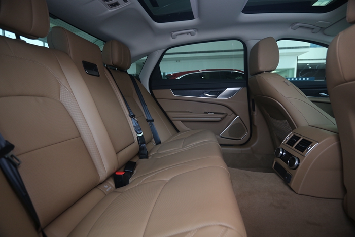 全新捷豹XFL的后排空间表现也十分不错,还配备有独立空调、USB充电接口以及点烟器接口,对于后排乘客舒适性照顾得很到位。美中不足的是,在中央位置有一个高高凸起的地台,因此只适合坐两位乘客。