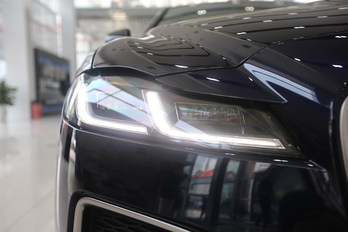 中网格栅内部为点阵式设计,在周围应用了镀铬材质进行点缀。全系标配了全LED大灯组,内部结构有所变化,双“J”形的日间行车灯辨识度很高,体现着JAGUAR的品牌身份。