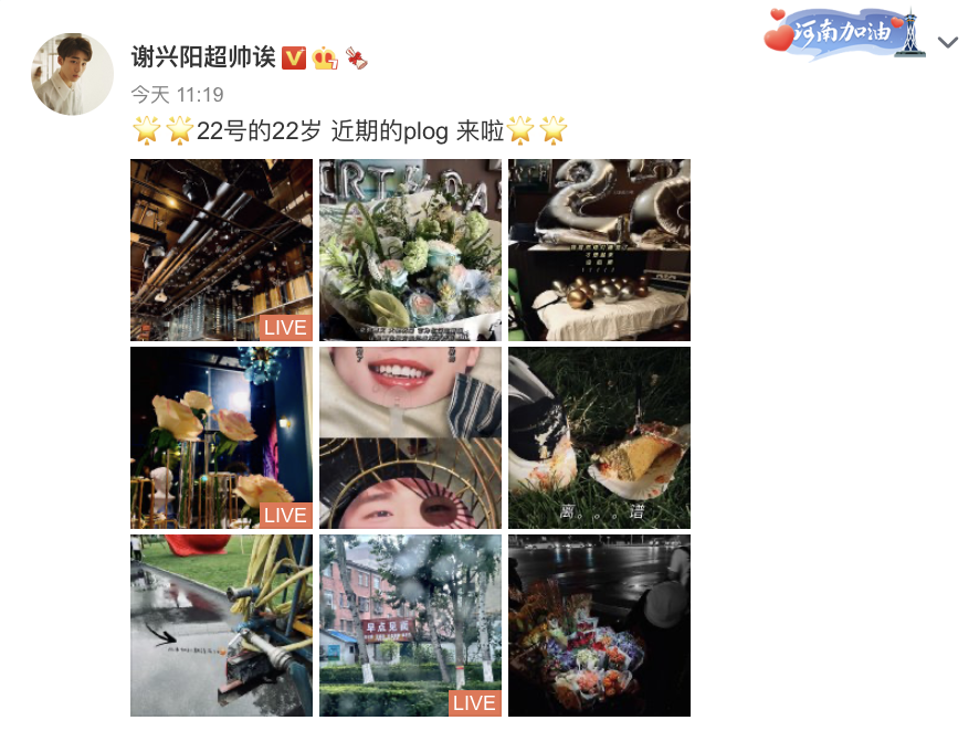 7月22日,谢兴阳在微博晒出最新plog。镜头下,各类生活气息的场景显得文艺范十足。除此之外,7月22日也是谢兴阳22岁的生日。在plog中,他用心记录下了近段时间在剧组里的繁忙日常与大家为他准备的生日惊喜。面对日期和年纪相重的巧合,谢兴阳也是难掩兴奋情绪,带着他独有的视角在图中注释着:“像抽奖活动的金蛋,藏了满满惊喜。”让不少网友在夸赞温馨浪漫plog的同时也纷纷为他送上了诚挚的生日祝福:“生日快乐!愿你永远开心没有烦恼。”