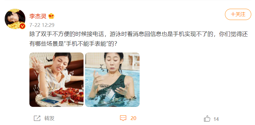 知名数码博主@李杰灵表示,除了双手不方便的时候接电话,游泳时用消息回信息也是手机实现不了的;另外一位数码大V@爱搞机的小nv孩则表示,健身房锻炼的时候是手机不能手表能的,比如跑步或双手举哑铃的时候,手机明显不方便接电话,但是触手可及的手表可以。