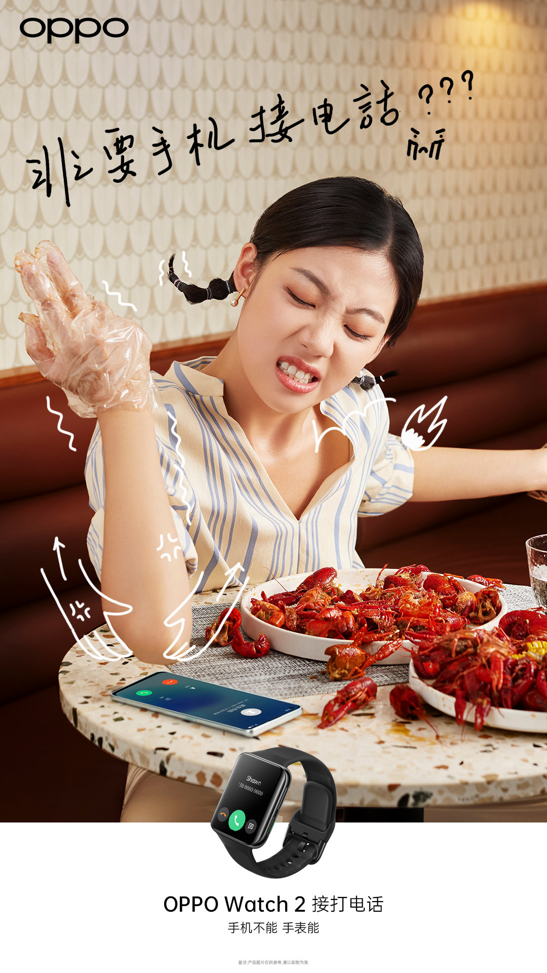 再比如外出吃饭双手不方便接电话的时候,用OPPO Watch 2也能很好的解决。从官方近日公布的海报来看,OPPO Watch 2或许配置eSIM功能,可以用手机共用号码也可以使用独立号码,进而在智能手表上实现接打电话和独立上网,这样一来在吃饭、逛街等不方便用手机接电话的时候,也可以随时随地用手表接打电话,或者是回复信息;