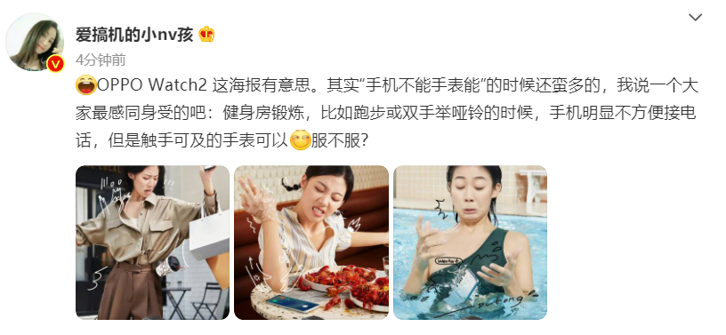 7月20日,OPPO官宣了最新一代智能手表OPPO Watch 2将于7月27日发布后,官微近日也持续为其预热,7月22日,OPPO智美生活官微再度发布“手机不能手表能”的海报,引发众多网友的转发和讨论,下面就一起来看一下,网友和大V眼中,究竟生活中有哪些“手机不能手表能”的场景。