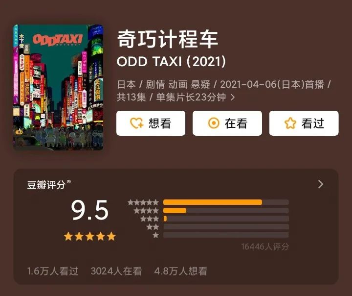 最后还有唯一真神《ODD TAXI》 (奇巧计程车) ,