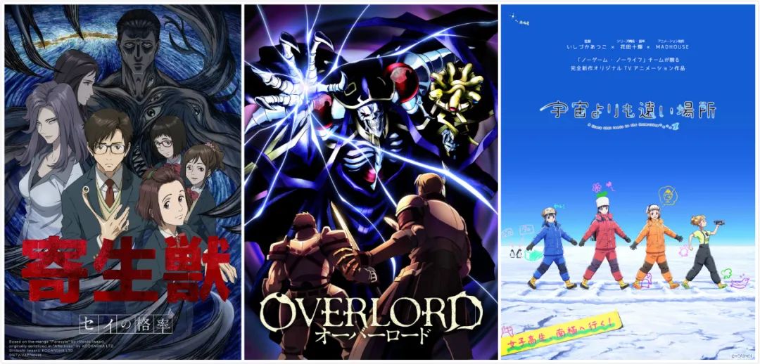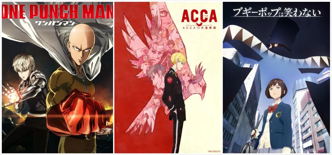 不乏《寄生兽》《Overlord》《花牌情缘》 《比宇宙更遥远的地方》《ACCA13区监察课》 《四叠半神话大系》《不吉波普不笑》《一拳超人》 等佳作频出。