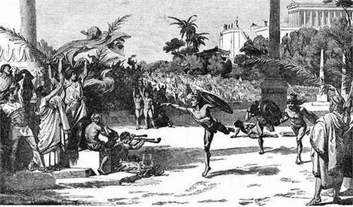 从古希腊流传至今的花瓶上或者雕塑中,可以看到运动员们裸体比赛的场景。因此,普遍认为裸体是古希腊奥林匹克运动会上的标准装束。