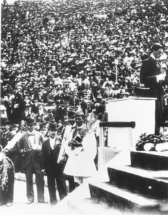 奥林匹克运动会马拉松比赛冠军Spiridon Louis领奖。