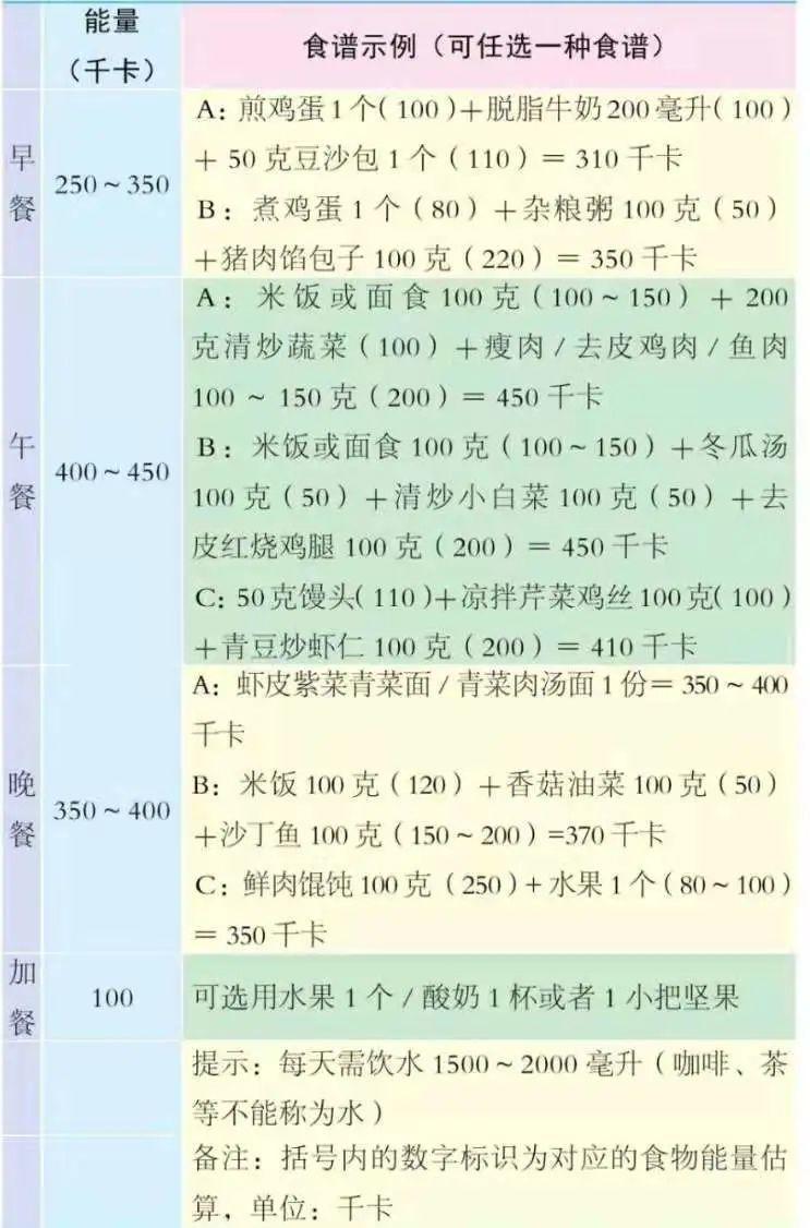 注:食谱来源于肥胖症营养与膳食指南