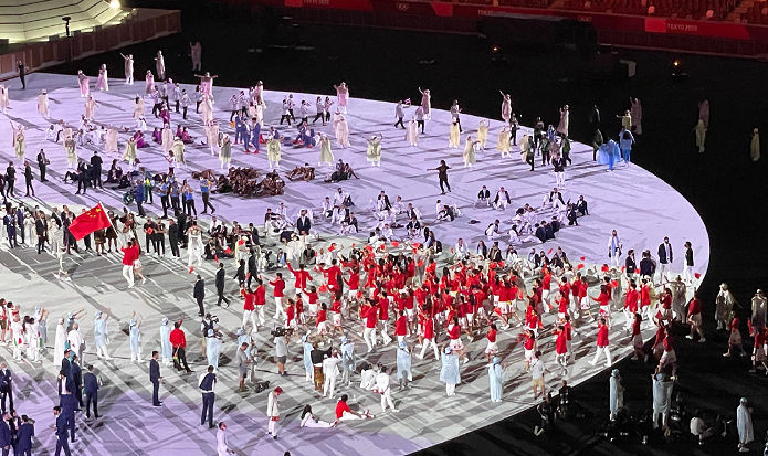 7月23日晚,东京奥运会开幕式如期进行,这也是奥运会历史上唯一一次现场没有观众的开幕式,因为疫情的原因,2020年东京奥运会延期一年,这次举办之前东京的疫情也不乐观,所以开幕式尽量简单化,包括参加开幕式的中国体育代表团的人数也没有以往那么多。朱婷和赵帅担任旗手,这也是本届奥运会第一次使用双旗手,朱婷也成为了中国队夏季奥运会的第一个女旗手。