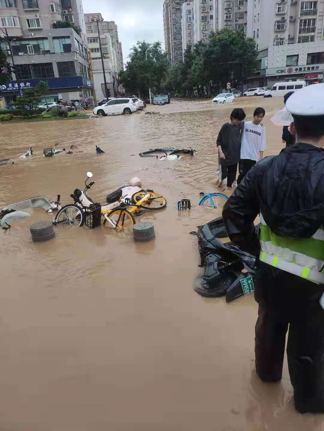 路上全是车,有些是漂过来的,停得横七竖八。当时很多在附近避雨的人,还有商铺的老板等,自发组织推车。七八个人将车子推到了相对安全的地方。短短几十米的距离,我们推了半小时。