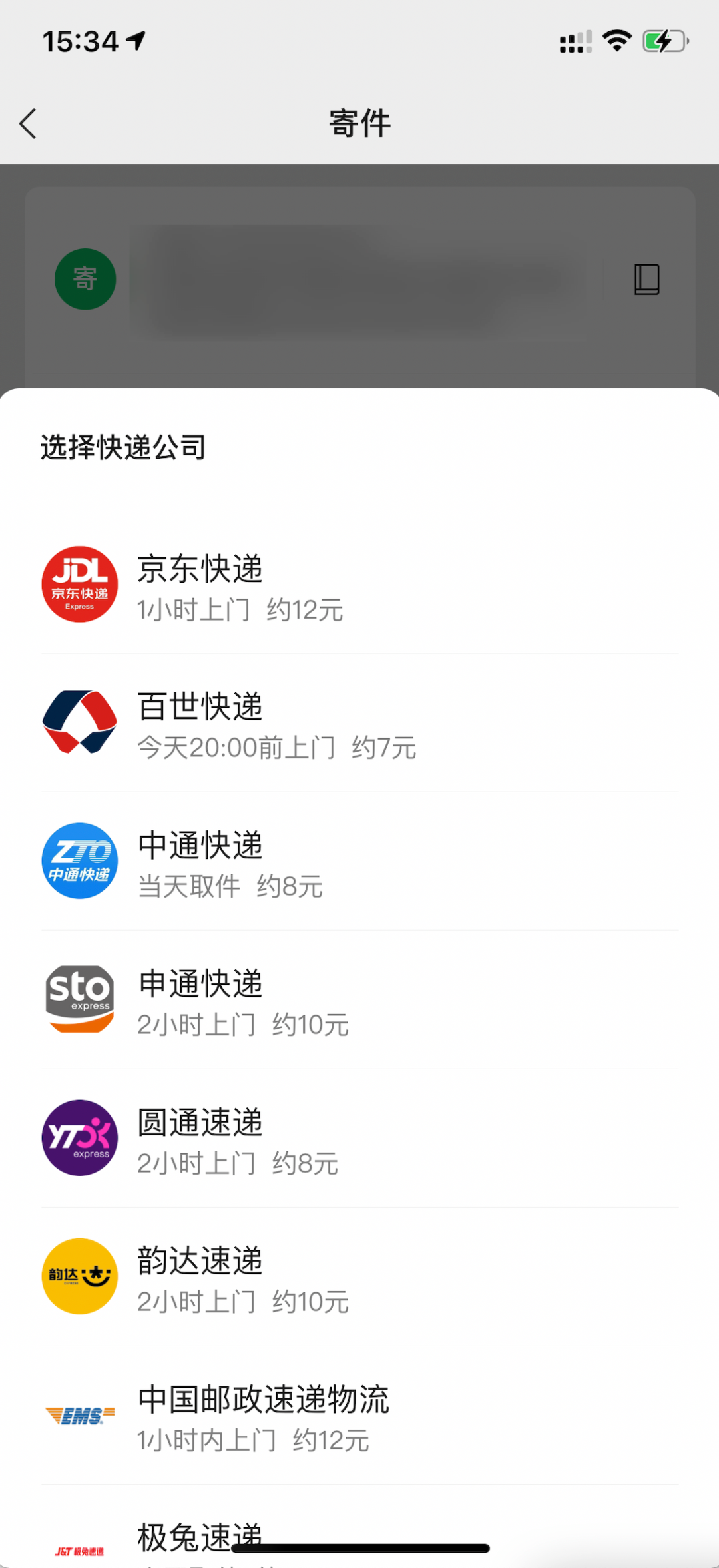 然后选择好快递配送公司就可以一键寄件了,非常方便。