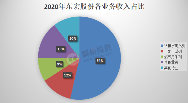 2020年公司给排水用系列产品营业收入为12.82亿元,占比53.56%,工矿用系列收入占比12.36%,燃气用系列收入占比9.20%。