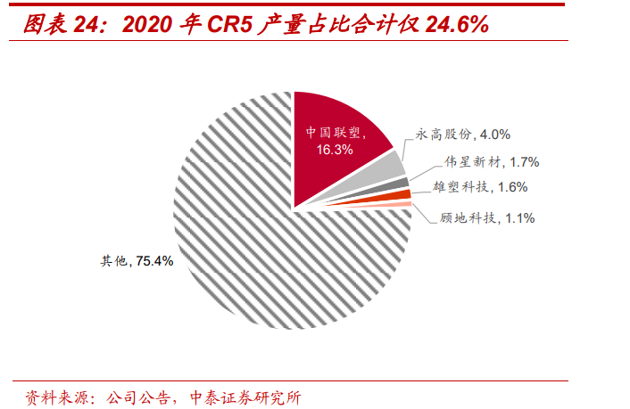目前我国塑料管道行业集中度非常低,尽管近年来持续提升,在2020年CR5也仅有24.6%。