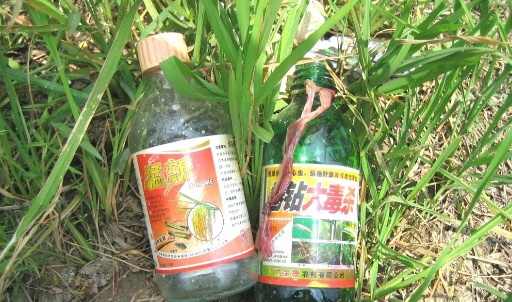最后是广州。由于大规模城市扩张,广州周围已很难找到农田,曾经是国家级产粮基地的番禺,现在也很难找到多少稻田了。广州市目前农田主要集中在增城市,那里许多乡镇处于山区,位置偏远,尚未大规模开发。我们调查了永和镇沽冲村、宁西镇冯村和华农试验基地,以及增城市农科所设在中新镇的试验田四个地方。沿公路行进,我们首先遇到的是沽冲村与冯村的两块稻田。这两块稻田面积都不大,约在十亩左右,而且周围都是与玉米、蔬菜等作物混播的,稻田周围的植被保护良好,有茂密的杂草,但是田边随处可见农民弃置的农药包装袋和药瓶,显然施药较重。接下来, 我们来到位于宁西镇的华南农业大学的试验基地。这片试验田总面积约三百多亩,位于山区,周围均未开发,完全为原生态的环境。田块、水渠为人工砌制,作物的品种和种植数量完全依据科研的需要进行,这样一来,整个稻田实际成了“温室里的稻田”。同样的,我们也去了位于中新镇的增城市农科所试验田。这里的情况不太好,在这块田的上游地区,有一个养猪场和一个印刷厂,那里排出的废水污染了灌溉用水,导致灌溉只能依靠受到污染的水。据那里的一位工作人员介绍,目前他们那里灌溉稻田只能依靠这种水,经过若干年之后,也许这块地就不能在种水稻了。