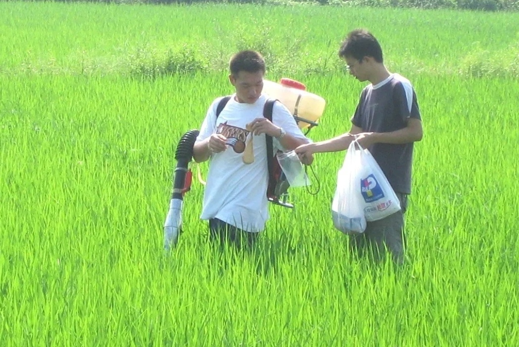 2008年9月9日~12日,陇西公实验室陈海东高工、魏武研究生、张雪研究生、吕向荣研究生、俞博文研究生等一行研究人员,赴广东珠三角四市广州、中山、珠海和东莞进行稻田节肢动物多样性取样调查研究。9月上旬,珠江三角洲四个城市的晚稻已进入孕穗期,水稻生长旺盛,且正值高温季节,温度和湿度都适宜节肢动物的发生。在这个季节,稻田节肢动物群落稳定,节肢动物丰富度和多样性也较高。在周边乡镇进行田间节肢动物系统取样。取样地点尽量分散,各样点之间的环境差异尽可能大,以期有较好的随机效果和代表性。采样过程中记录样点周围的环境因素,并对环境因素进行量化评价,以便分析稻田节肢动物群落与环境因素的相关性。取样采用改装的吸虫器抽吸与目测法结合的方式,共随机取80个样方,每样方面积为1平米,吸取样方内所有节肢动物,于70%的酒精中浸杀,带回实验室做分类鉴定。对于飞翔能力较强,吸虫器无法吸取的昆虫采用目测方法记录。鉴定要求尽量分类到种。