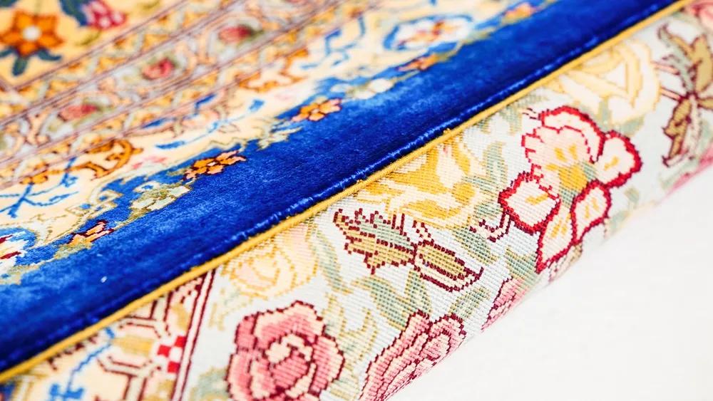 真丝手工地毯的市场价格一般都在每平米几千到上万元的价格,之所以价格昂贵是因为其制作工艺非常繁琐,受到生产工艺的制约,纯手工制作,一块5、6平米左右的真丝地毯生产周期一般需要8~12个月的时间甚至更长,而且由于生产工艺过于陈旧又不能大规模的进行机械化生产,所以现在真丝地毯和手工编织羊毛地毯的这种生产工艺已经被列为我国非物质文化遗产。