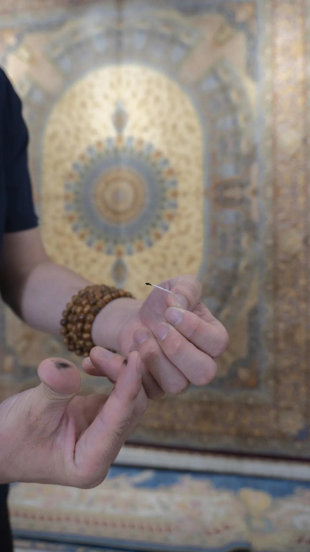 这两点是最行之有效的可以准确判断真丝还是人造丝的方法,从地毯上剪下纱线来烧,人造丝点燃会结焦,而且味道刺鼻,真丝点燃后不会结焦,一碾成粉末状,带有烧头发的味道。