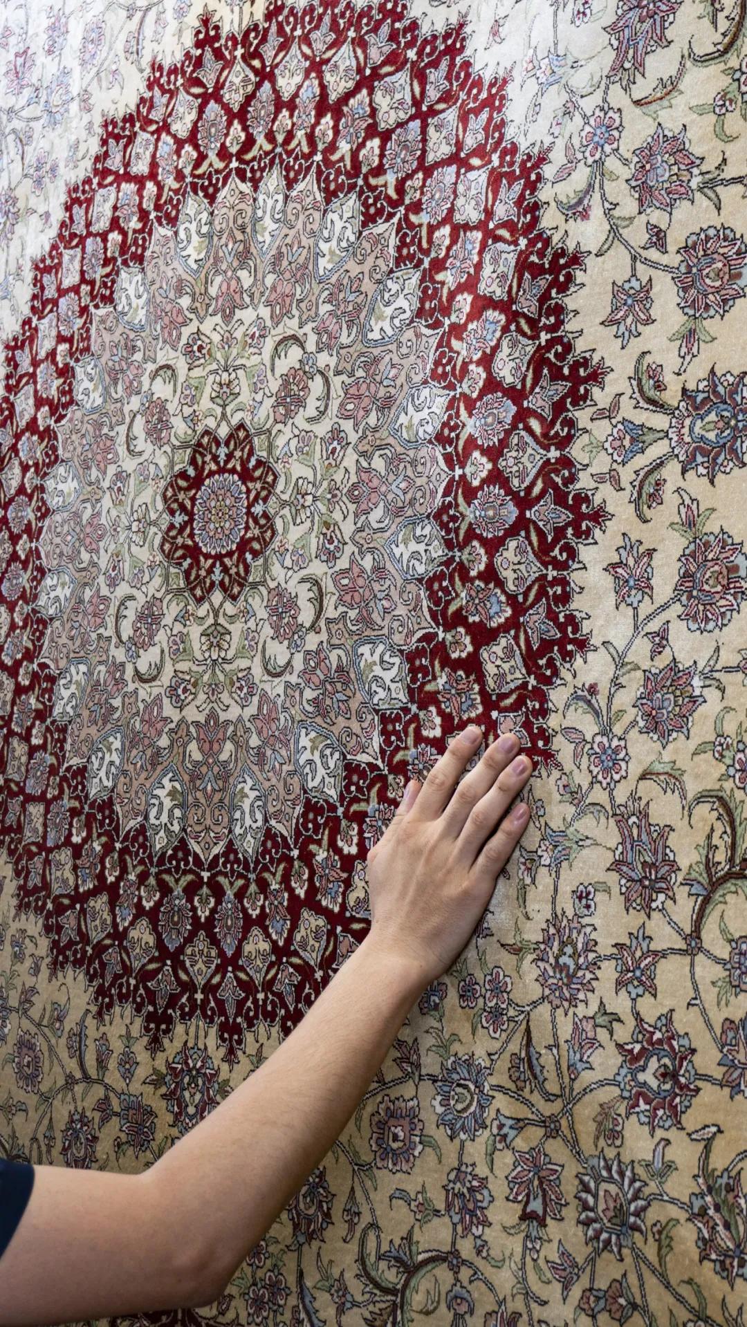 真丝地毯无论你顺着摸,逆向摸都非常顺滑,人造丝则有些发涩,但不是非常专业的人士也很难分辨出这细微的差距。