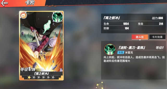西有大秦、如日方升。大家好,我是大秦游戏小编!在《航海王热血航线》中技属性的SS角色鹰眼米霍克作为第一位限定角色,也是目前来看最良心的限定角色了,后面出的青雉和路奇都是什么牛马,鹰眼米霍克不仅在PVP中表现出色,在PVE中也是极为亮眼的,输出能力甚至超过了三幻神之一的艾斯,有些动摇《航海王热血航线》三幻神的地位了。