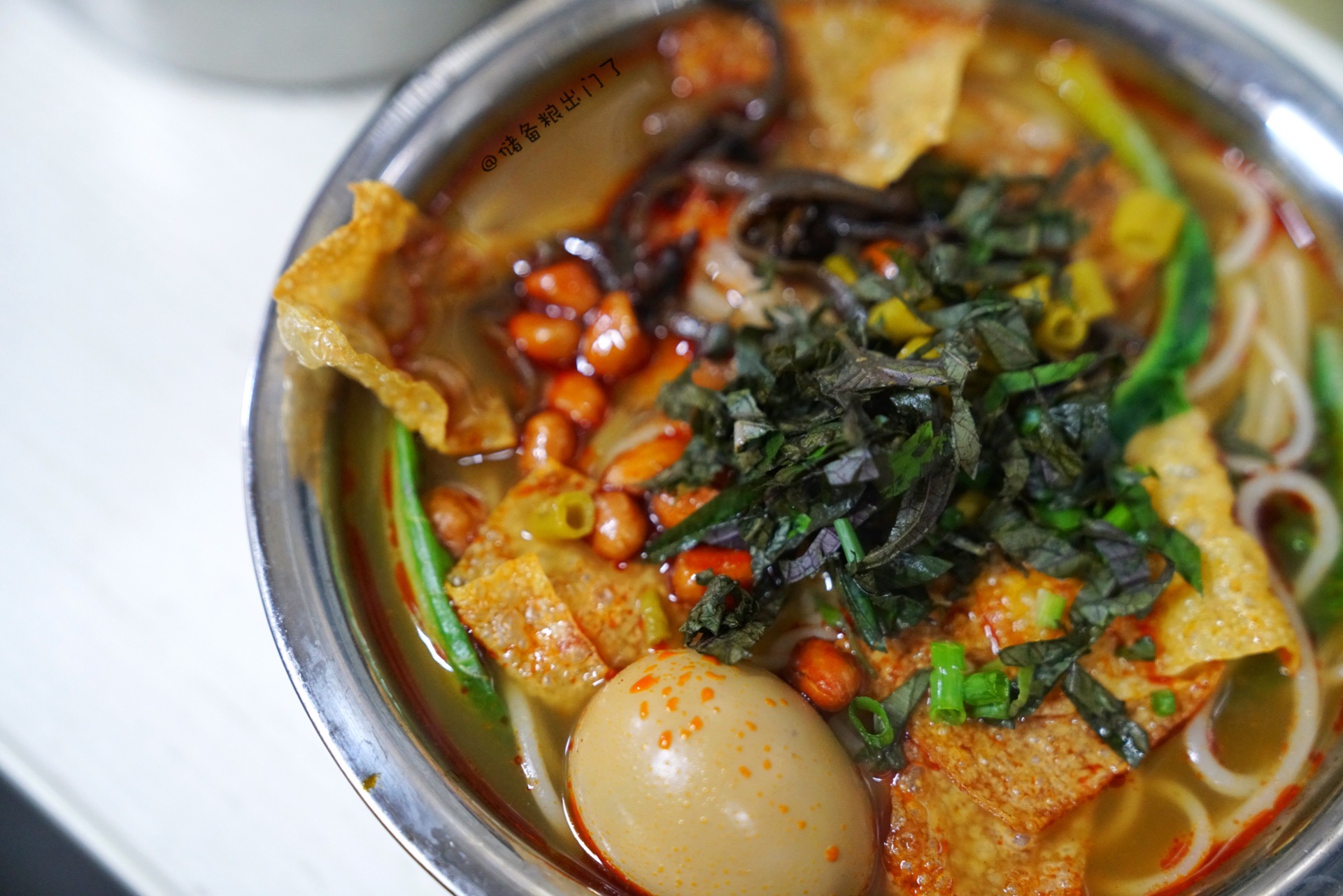 柳州的螺蛳粉都煮得这么劲道嘛~ 每一口都弹弹弹,特意要了微辣的汤底,嗦起来果然差着那么点味道,喜欢重口味的建议直接要正常辣。汤底混着酸笋、紫苏和咸糯糯的芋头,这碗粉真是给出了新惊喜。