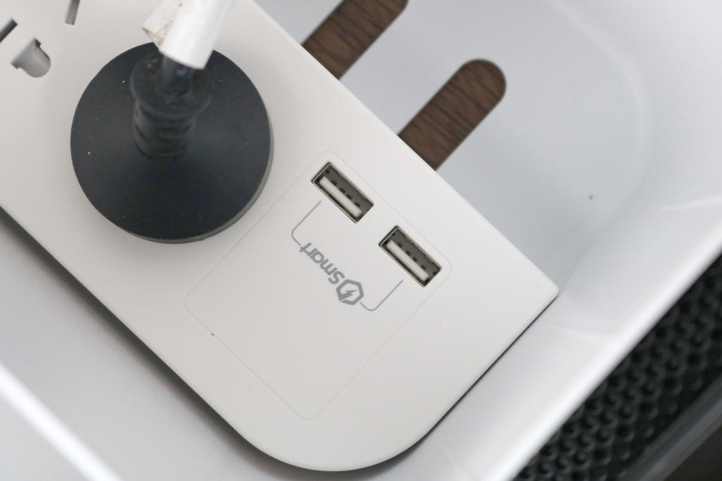 我这款收纳盒中的插排通过底部卡扣固定在收纳盒中,我这款是USB智能充电款,支持5个五孔插头以及两个智能USB充电。每个插孔的间隔也是蛮大的,不会出现错插接触不实等现象。