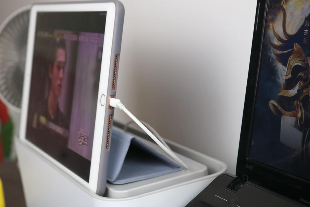 ipad的边充边煲剧也是不错的选择,而且加上收纳盒的高度,在桌面上煲剧视野也更加清楚。