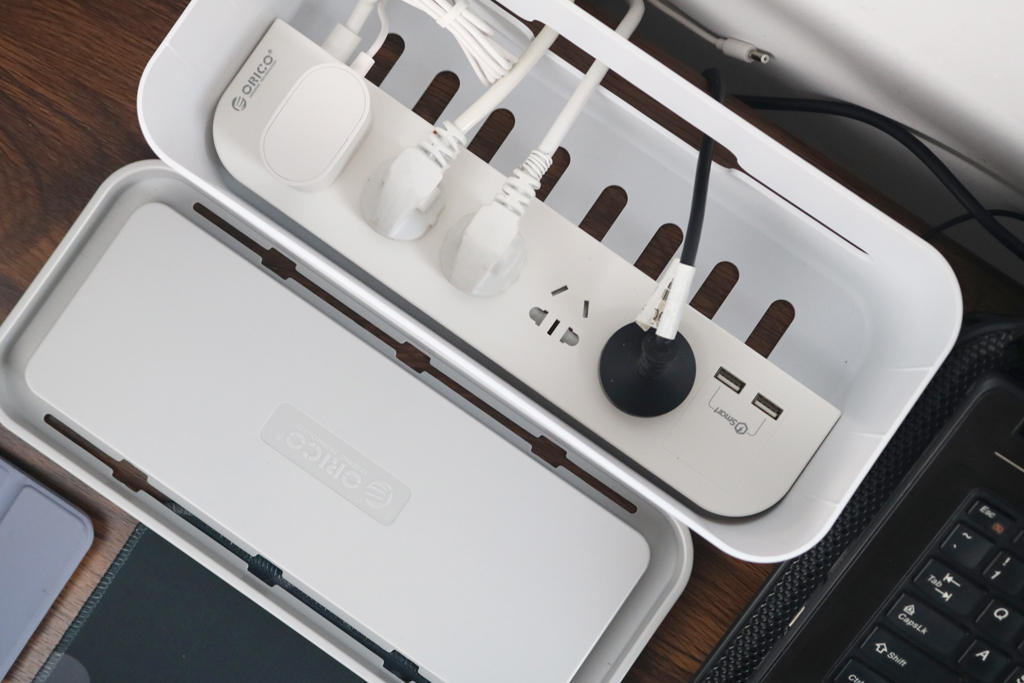 奥睿科一体式手收纳盒排插的设计使用了半个月的时间,给我的感受就是对于线束的整理比较强, 及时你使用的电源线很长,也能够隐藏在收纳盒中,放置手机或者平板在收纳盒上也可以进煲剧玩手机等操作。对于不经常用的数据线电源线也可以放置在收纳盒当中。高阻燃收纳盒的设计阻绝液体进入,防止意外触电。