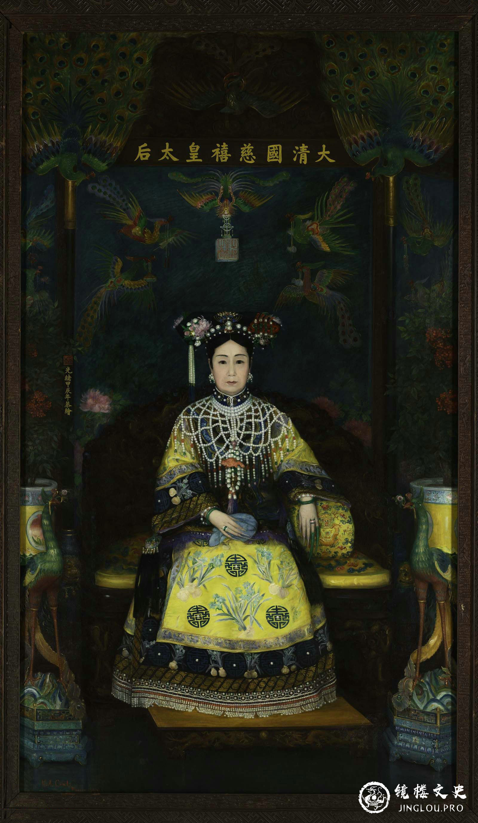 卡尔为慈禧太后所作的油画像原藏于美国斯密桑宁基金会国家美术文物典藏署,现存于台。画像中的慈禧,身着黄袍,手戴翡翠手镯一对及 翡翠护指,头戴玉蝴蝶及鲜花,穿的和戴的,富丽堂皇。