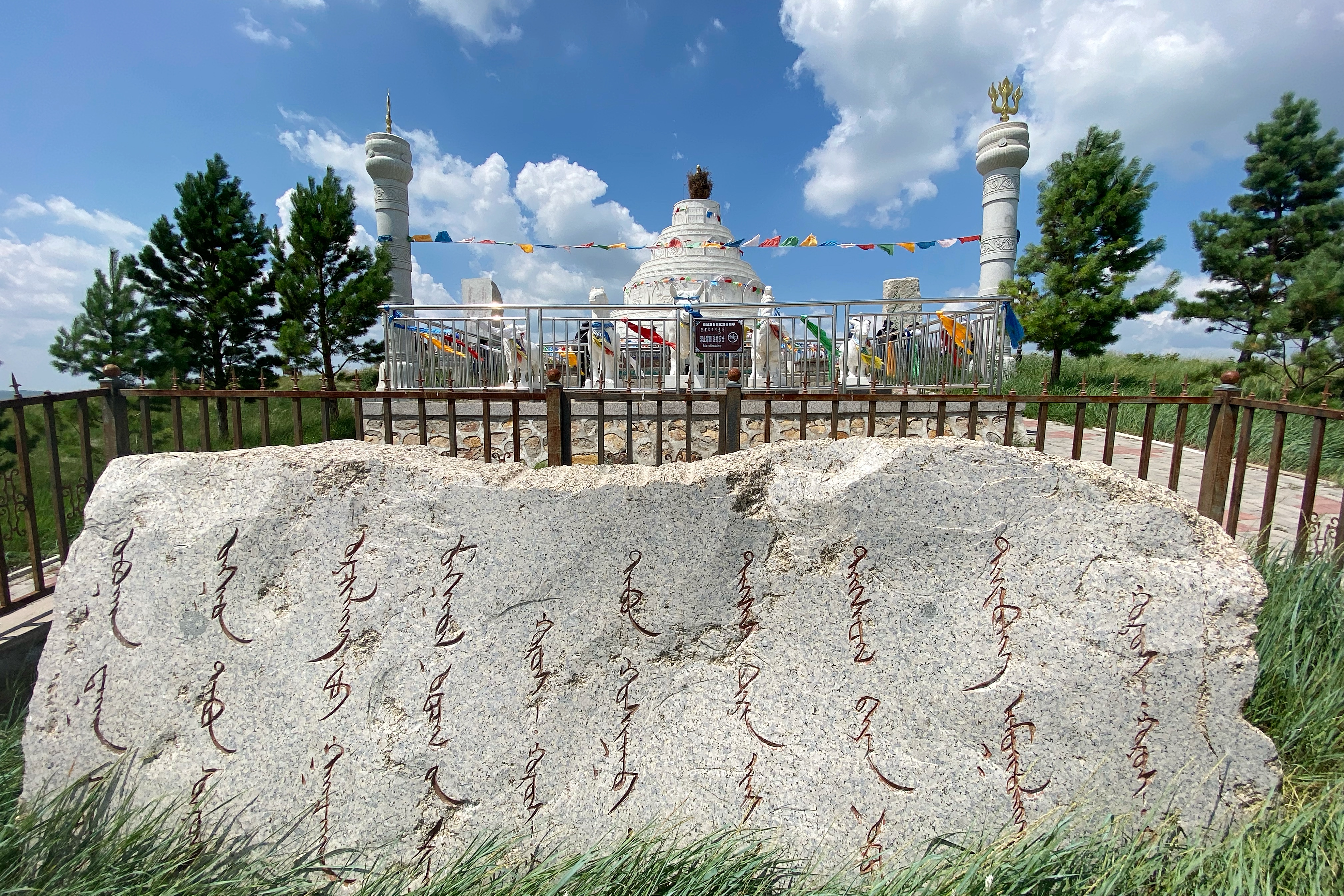 离开锡林浩特,前往乌兰五台,这里已是“游牧文化之源、中国白马之乡、中国百灵鸟之乡”西乌珠穆沁旗。蒙语里乌兰是“红色”,乌兰五台属于红五台,包括五畜兴旺祈福塔、男儿三艺祈愿塔、天下第一大敖包、成吉思汗广场、等等。每年农历5月13日为乌兰五台祭敖包日,敖包祭祀、摔跤、赛马等活动都有。虽是景区,丝毫不影响草场野餐的浪漫。