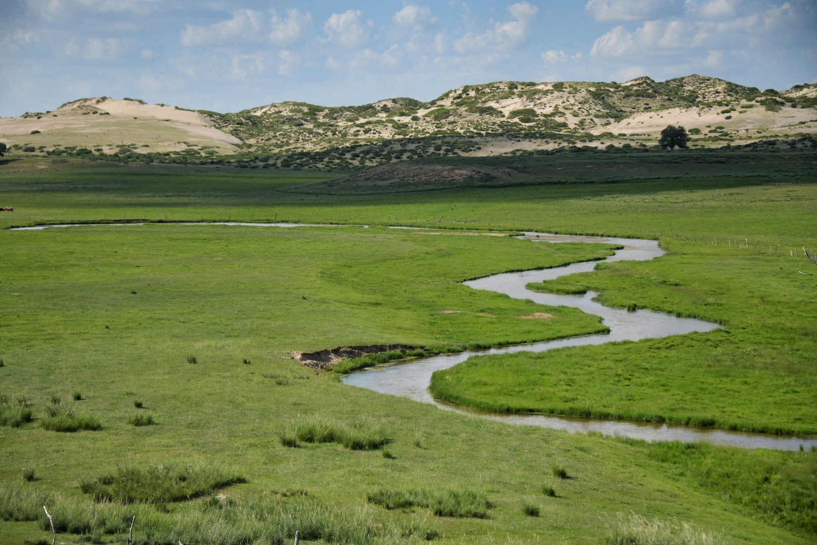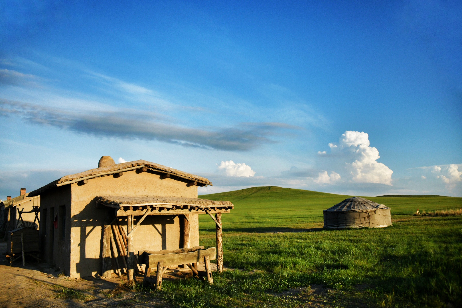 在浑善达克沙地,可以租一辆越野车,体验比非洲还要野性的狂野。越过水泡,爬上坡地,在那些不规则路面上,可以听到轮胎与细土精致地碾磨。忽到一处风景极佳之所,陶醉于那些弯弯曲曲的溪流、成群结队的牛羊、零零星星的蒙古包之中。