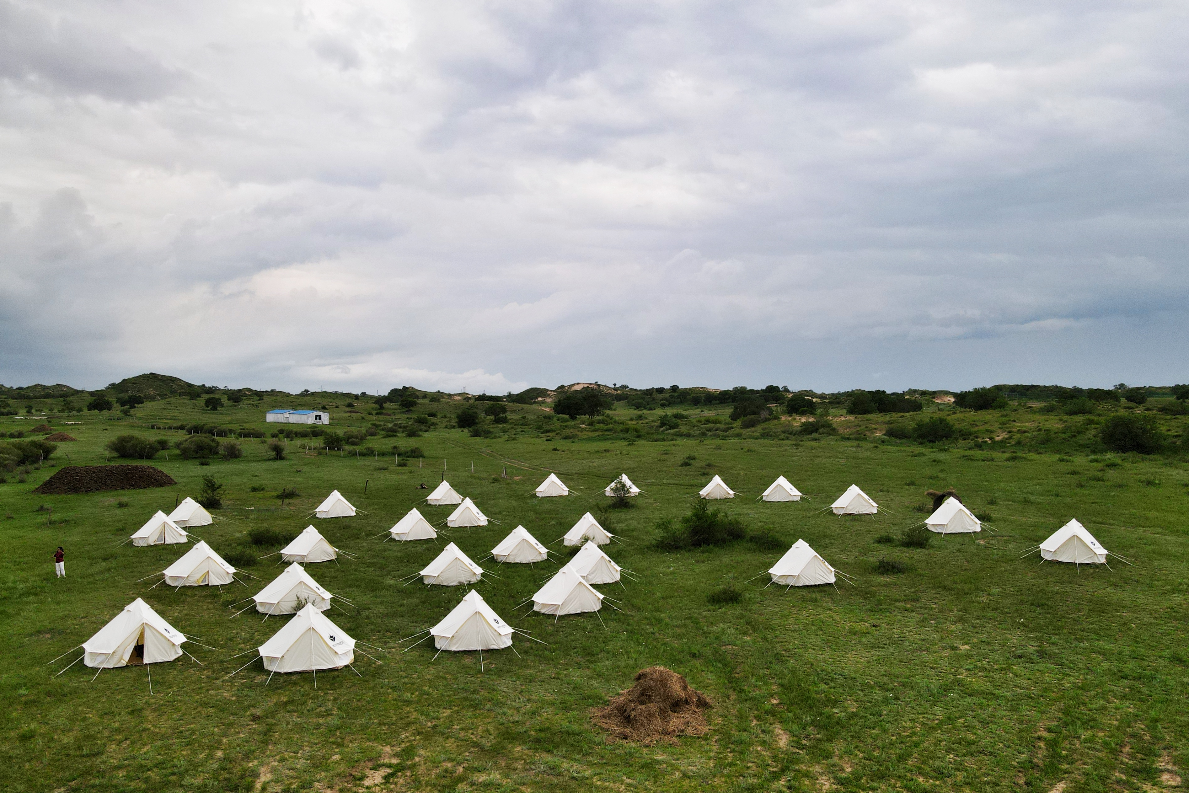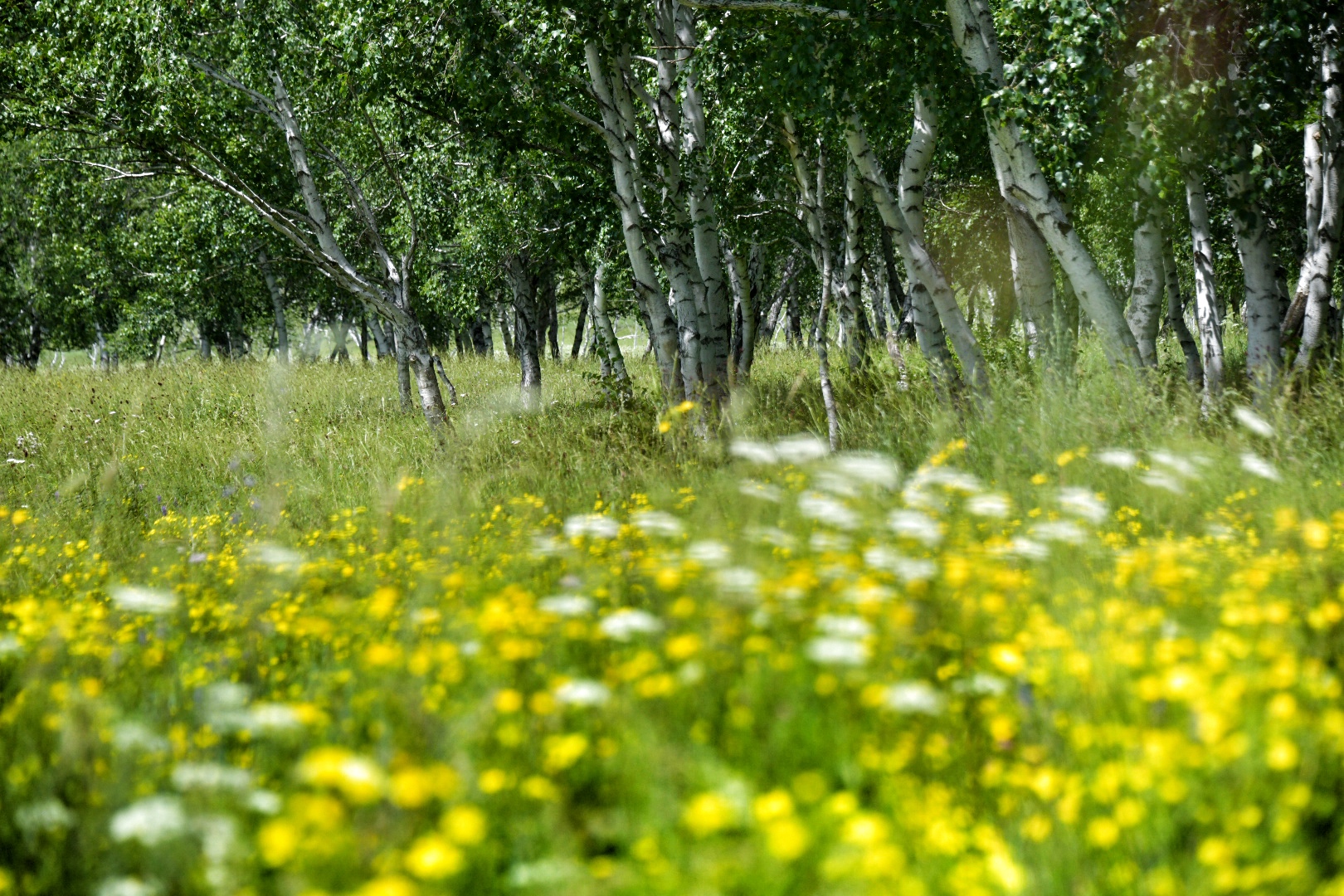 收拾起金莲川花海的温柔,前往浑善达克沙地感受另一种狂野。浑善达克沙地是离北京最近的沙源,也算是一种非典型草原,被称为疏林草原。稀稀拉拉的树木,甚至没有两棵是相似的,但在雨水充足的今年,疏林草原一样郁翠清青。