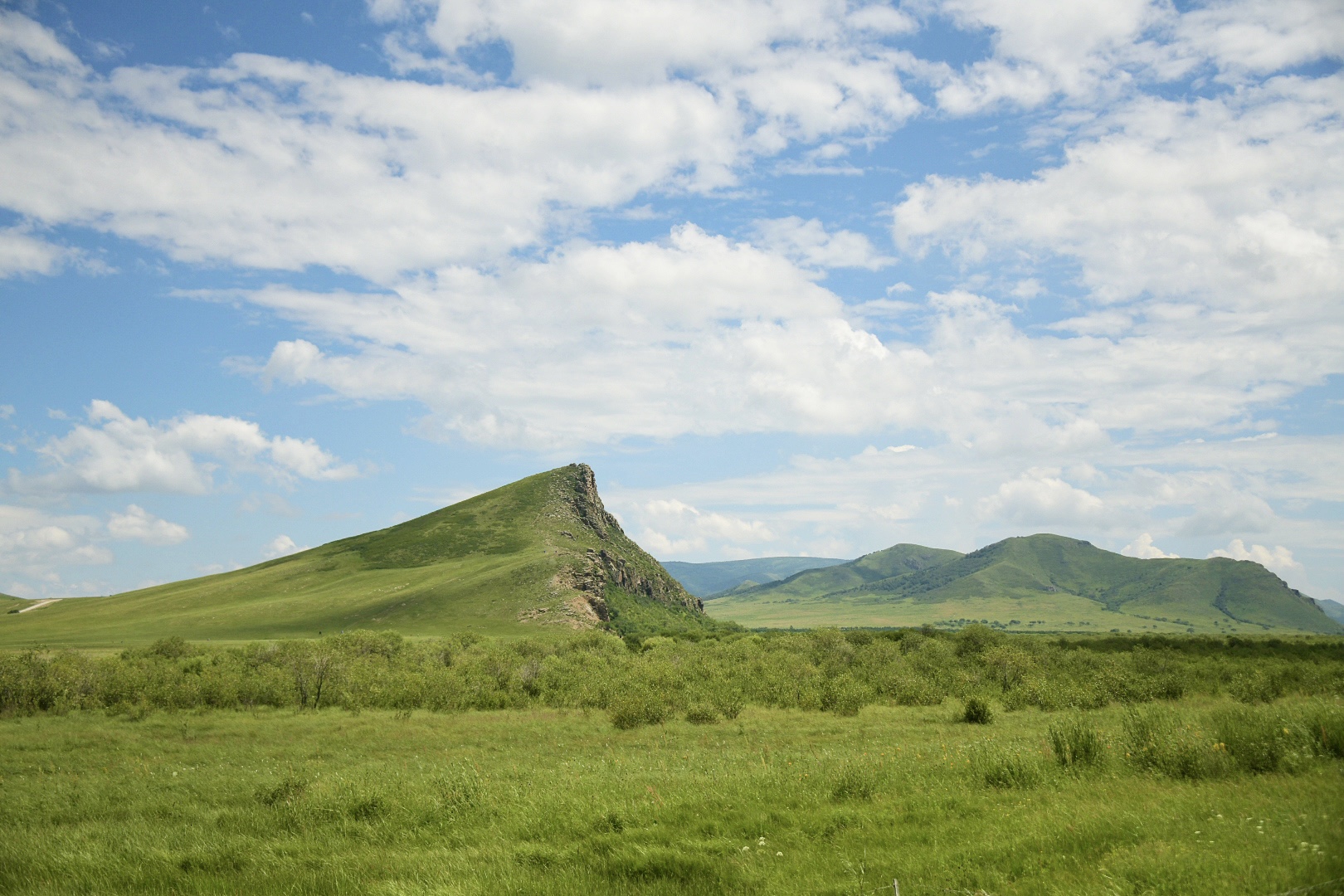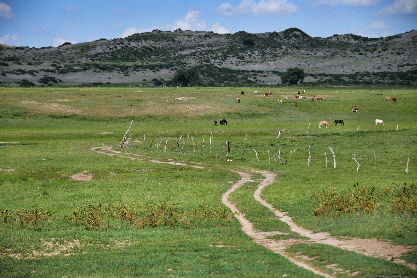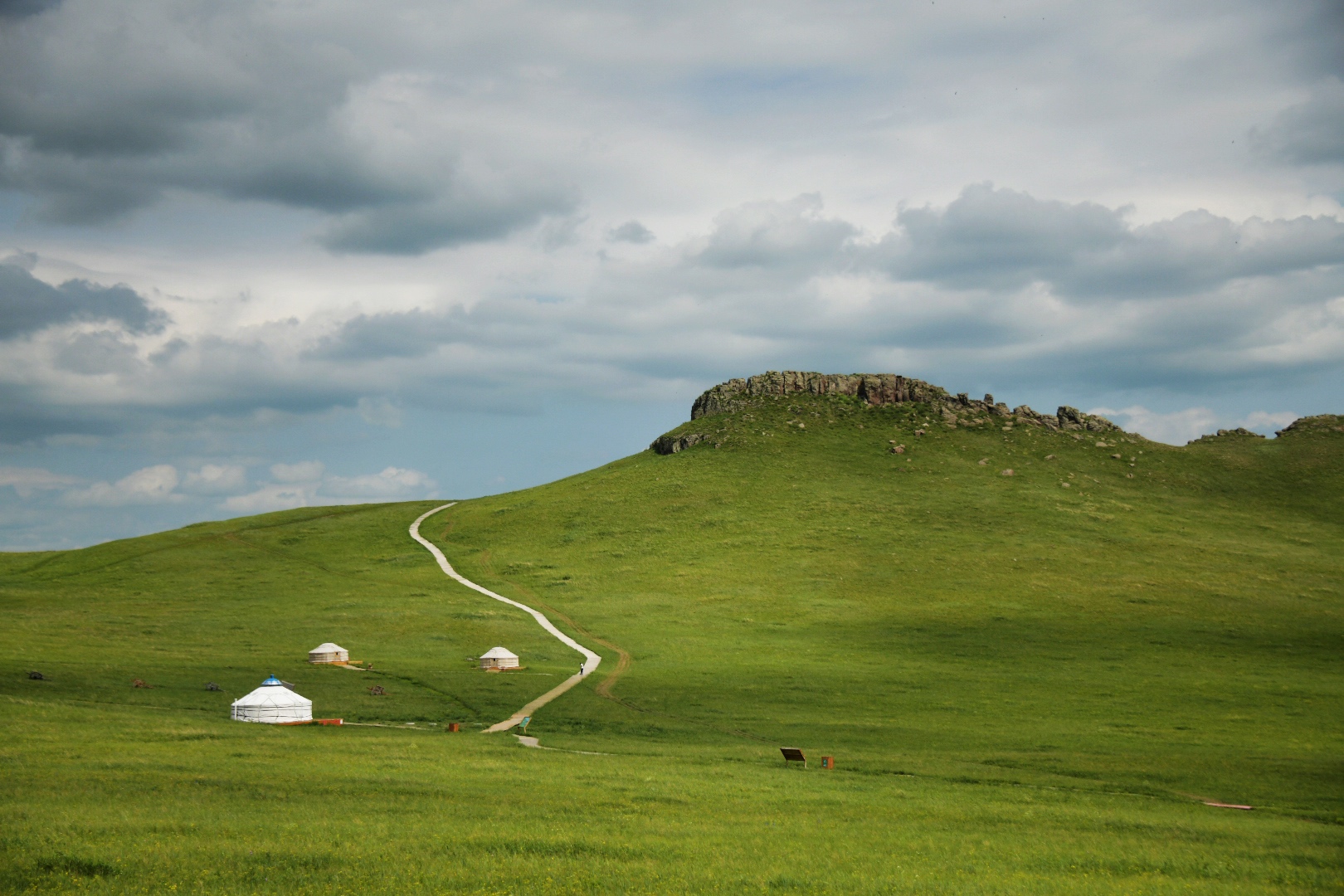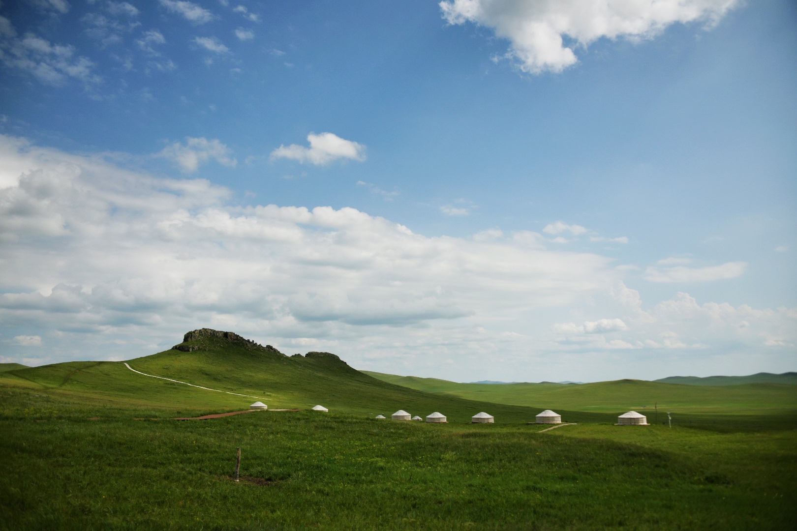 西乌珠穆沁旗有一条脑干宝力格嘎查环线,串起许多美丽的嘎查,嘎查是蒙语里乡村的意思,一路都是典型的山地草甸草原,地势起伏和缓,视野极为开阔。
