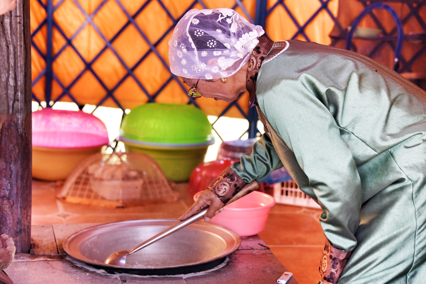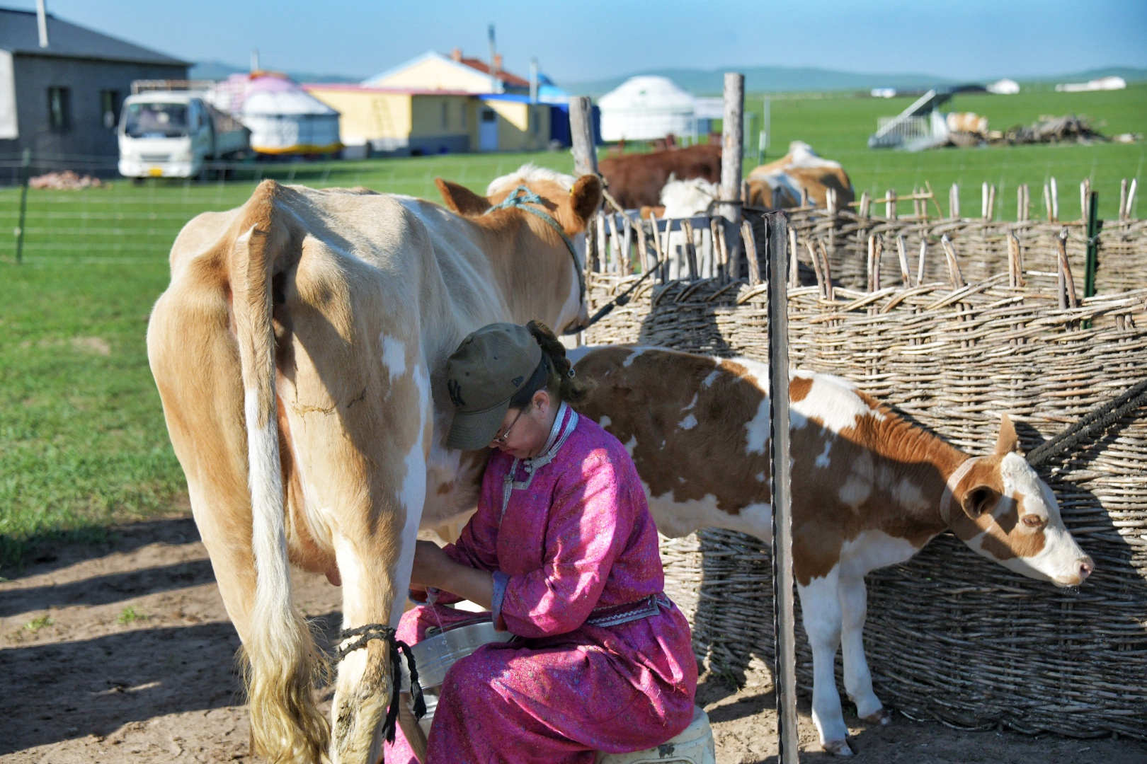 清早,去牧民家,虽然也是蒙古包,和以前传统的比已是大不一样,每家的草场规划得很科学,间隔放牧可以让草持续性地生长。早上也是人工挤奶的时候,遇到脾气大的奶牛,需要提前把牛的后腿绑定。