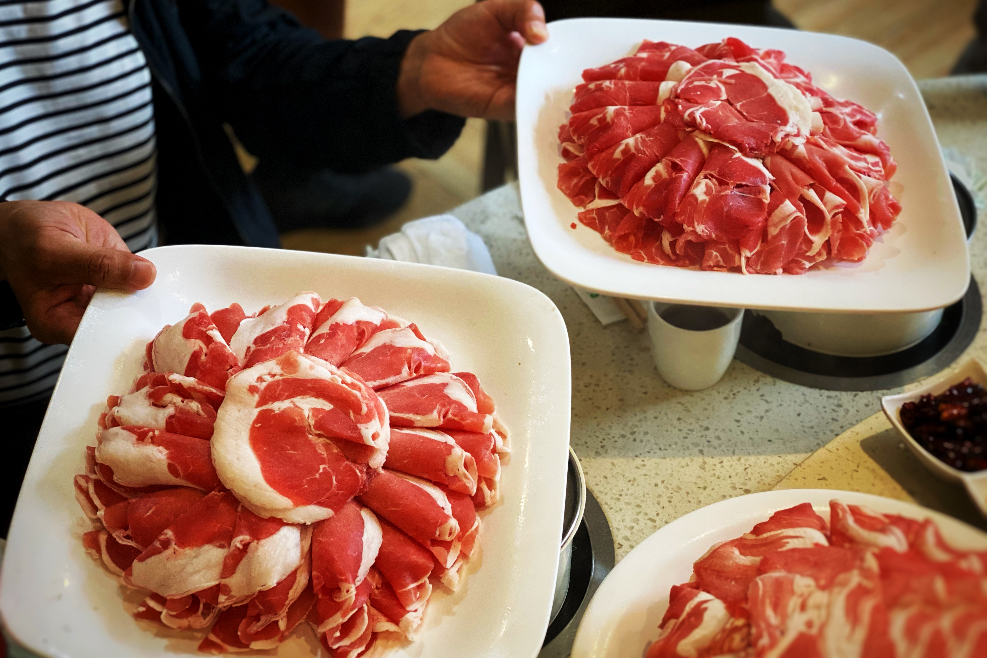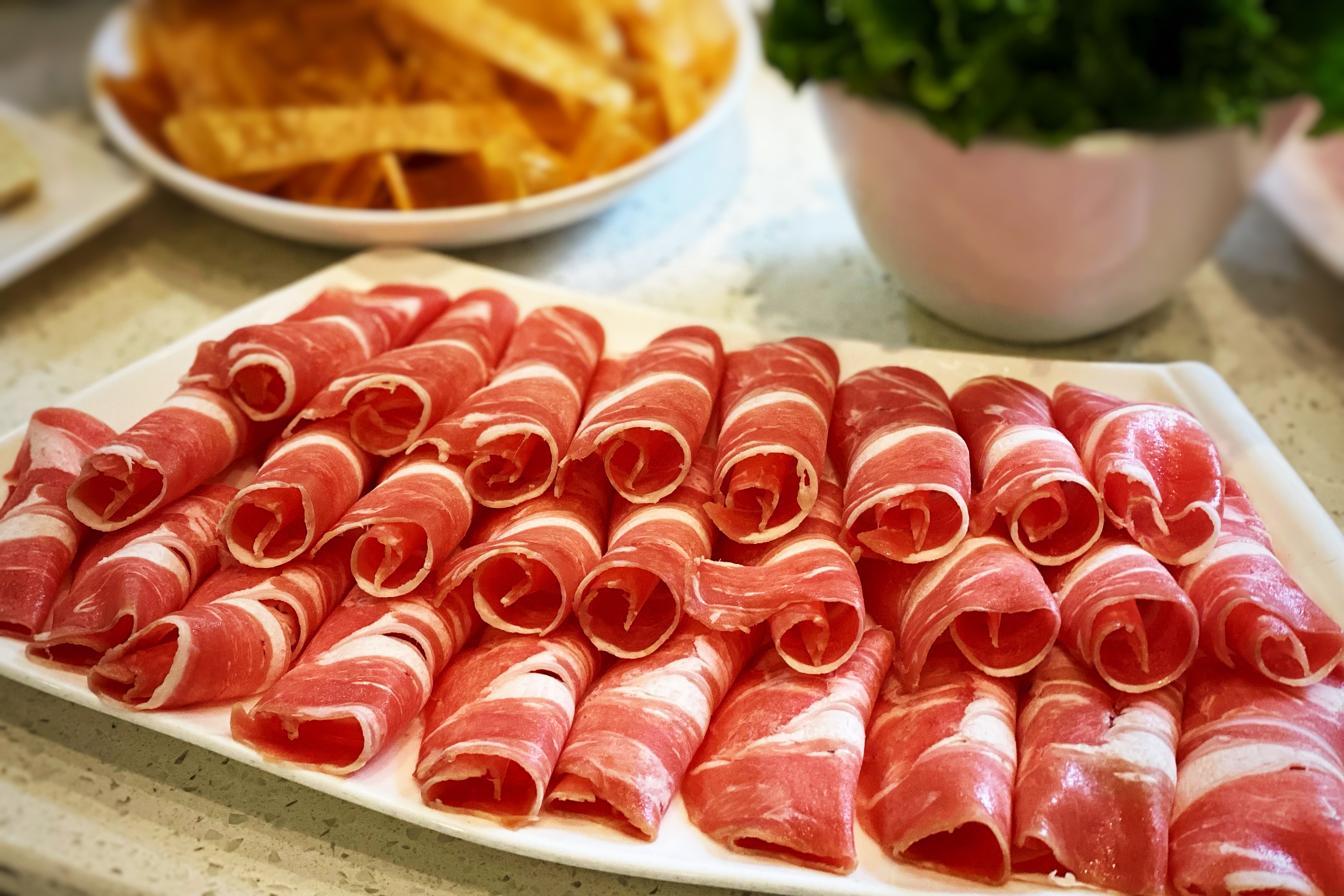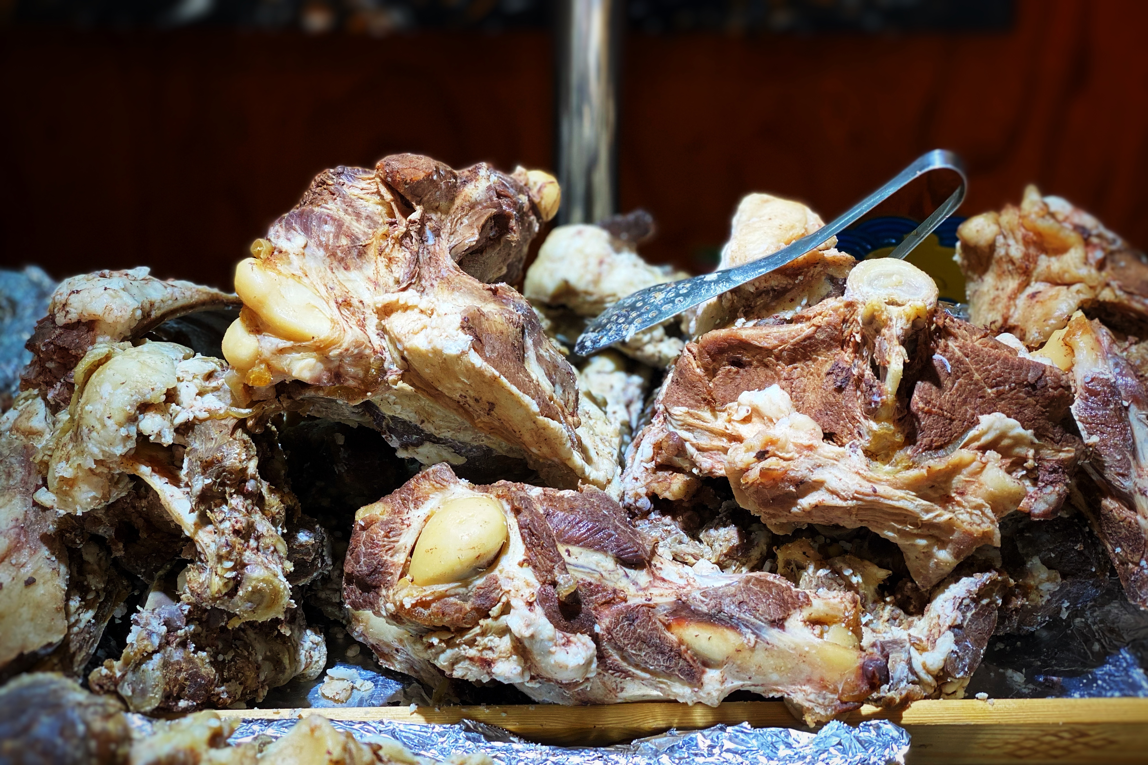 来锡林郭勒,一定要去吃顿涮羊肉,要知道锡林郭勒是“中国的生态羊都”,驰名中外的苏尼特羊就在这里。锡盟人讲,锡林郭勒的羊肉是国内最好的羊肉,没有之一,这和当地的土壤、水、以及草场不无关系。而且涮羊肉就是蒙古族人发明的,当年行军打仗,溪边取水,用头盔煑了羊肉便吃。草原上的男人都要会杀羊,吃上好的羊肉是草原上延续下来的传统。