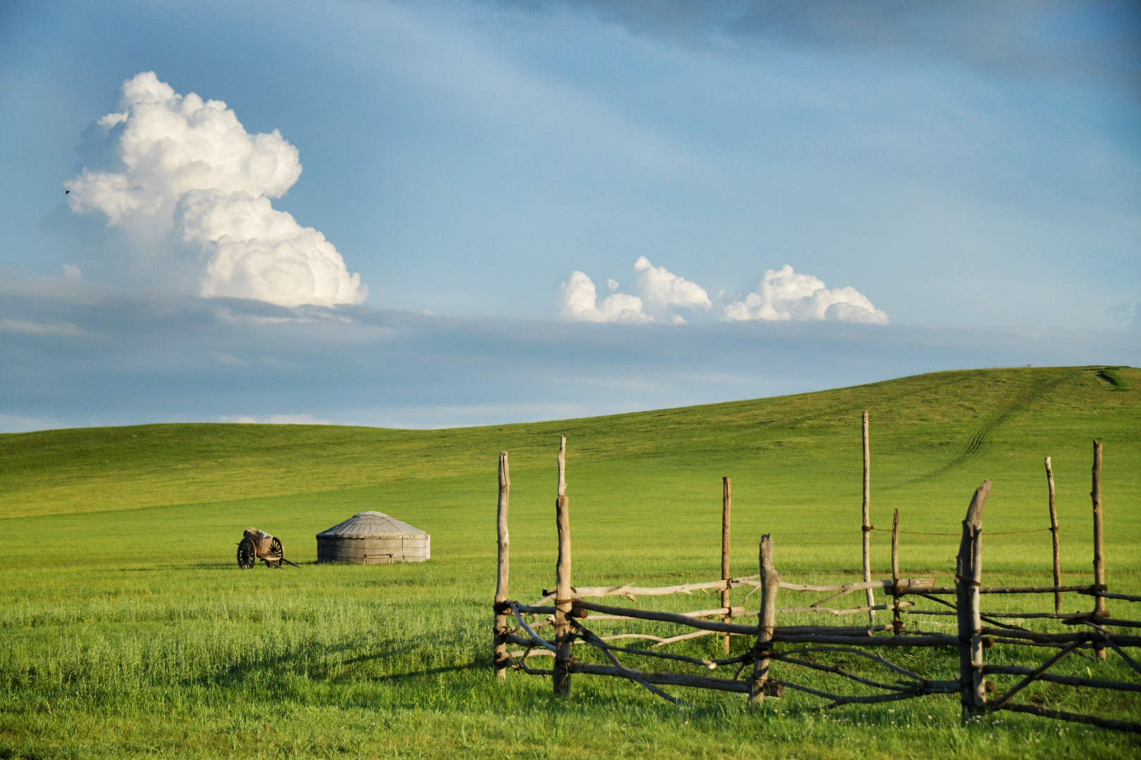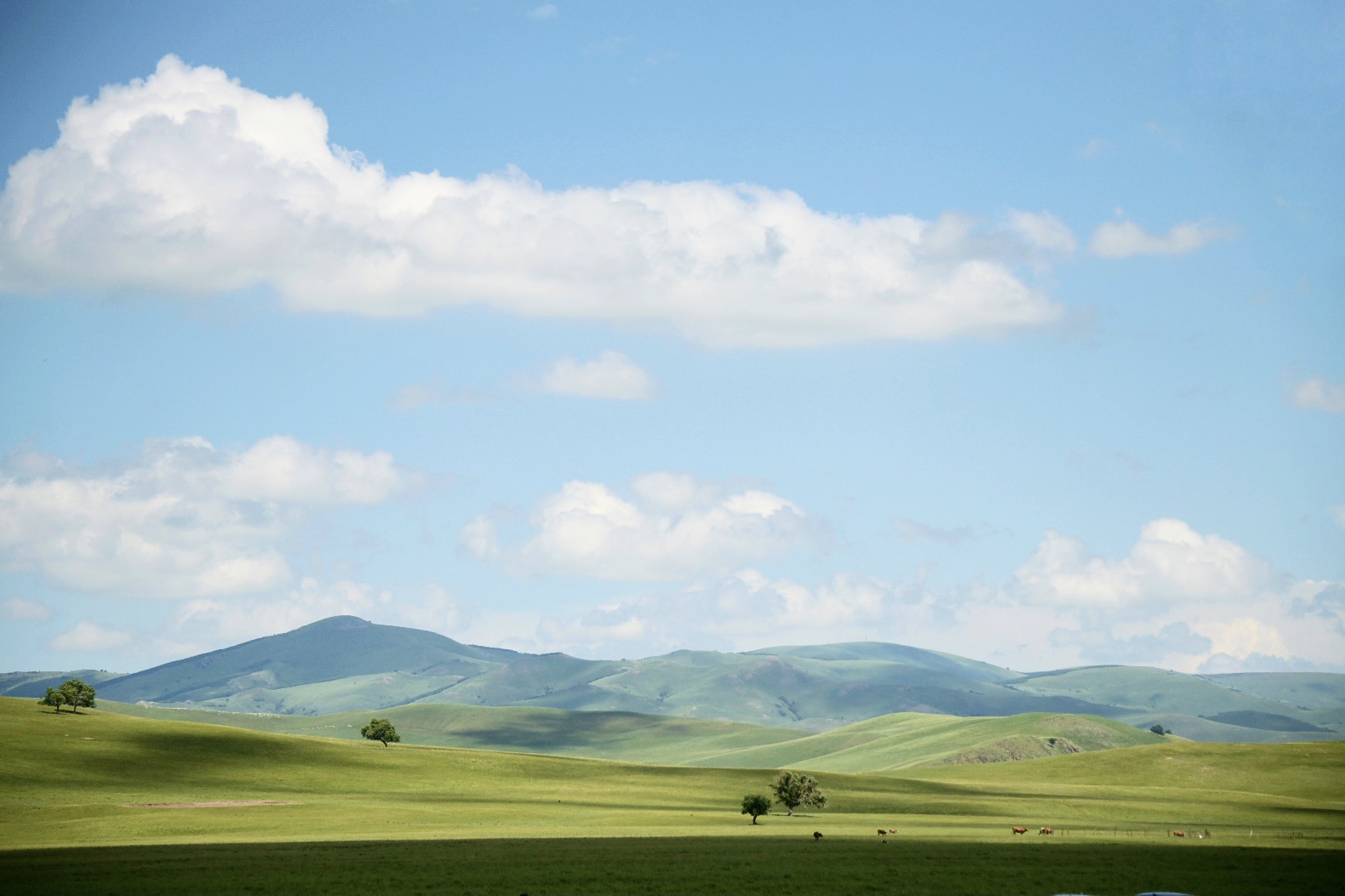 从北京驾车,一路北上,逃离酷暑,只觉得那些青山慢慢地被甩在身后,地势也渐渐平缓起来,位列中国四大草原之一的锡林郭勒大草原,满眼苍翠,轻风拂过,带来阳光与草木的清香。今年的雨水尤其丰沛,锡林郭勒的草原更加郁郁葱葱,万物生长,生机无限。