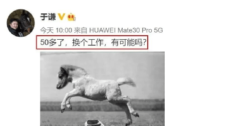 可是最近于谦发的一条微博,让德云社的粉丝炸了锅,大家纷纷在猜测德云社可能要“变天了”。于谦在微博上写道:“50多了,换个工作有可能吗?”在这句话的下面,还配了一张照片,是一匹高头骏马,从一个槽子上跳过去的照片,很明显这是在暗示自己要“跳槽”。也不知谦大爷只是玩玩儿呢,还是玩儿过了头。